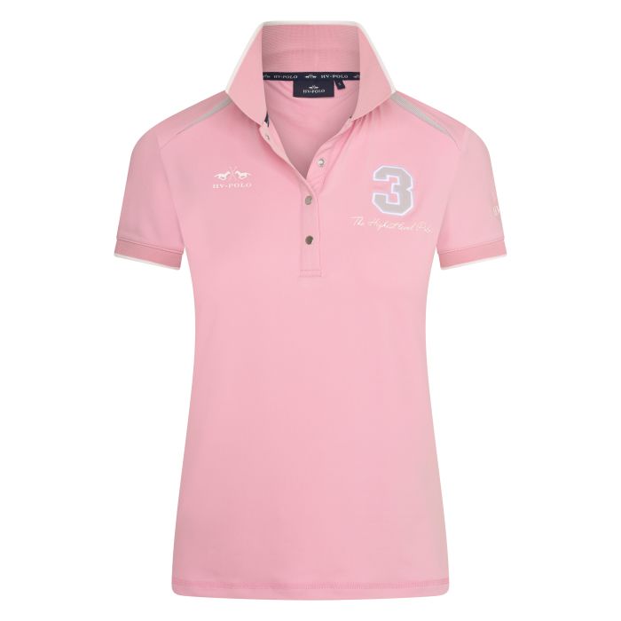 Sporty polo shirt made of a modern material mix and net inserts on the shoulders. The elastic material made of a functional 4-way stretch material dries quickly, and it is breathable to allow for perfect air circulation and the right body temperature. The finely-ribbed polo collar is just as rich in contrast as the ripped cuffs. The beautiful V-cut with practical, shiny push-buttons gives this shirt a female touch. The tailored model features a small logo print on the right side of the chest. The artwork on the left side of the chest is a combination of embroidery, mesh, and print. Parts of this logo can be found on the left sleeve and as a text print on the back of the collar.
