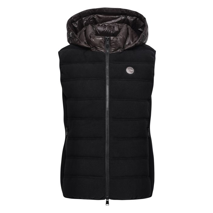 Ready to elevate your equestrian style with a piece that truly understands your needs? This HVP-Fiona bodywarmer is a true gem, thoughtfully designed with a smart combination of stretchable scuba, plush padded fleece, and sleek shiny woven polyester. It features a cosy fake down padding that keeps you wonderfully warm without any bulk, perfect for those brisk mornings at the stable or an afternoon polo match. The shiny woven polyester on the windcatcher, hood, and collar adds a touch of sophisticated flair, while the comfortable 4-way stretch scuba fabric on the side panels ensures you move with complete freedom – ideal for any rider. You'll love the adjustable and even detachable hood, which can be neatly secured at the back, along with the protective chin protector and a convenient two-way zipper. Plus, handy zipper pockets keep your essentials safe while you focus on your equestrian passion.